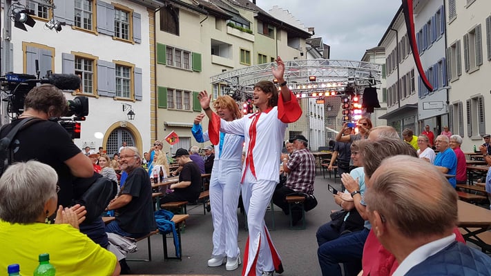 Stargast am heutigen Abend war Beni Thurnheer, die pensionierte TV-Legende, aus dessen Leben heute einiges zu erfahren war. Sepp & Rita und Mitglieder aus dem Musical «Mamma Mia» sorgen für musikalische Unterhaltung. Mit Show und Witz ging die Sendung bis kurz vor zweiundzwanzig Uhr, dann war Schluss mit dem Live Teil und das Fest konnte beginnen.