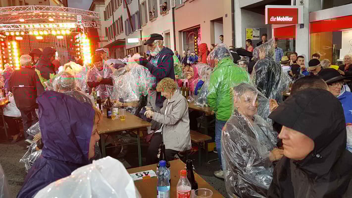 Und mit dem Sendebeginn liessen die Wolken ihr Nass auf Klingnau nieder und so hatten die SRG Regenschütze auch noch ihren Nutzen gezeigt.