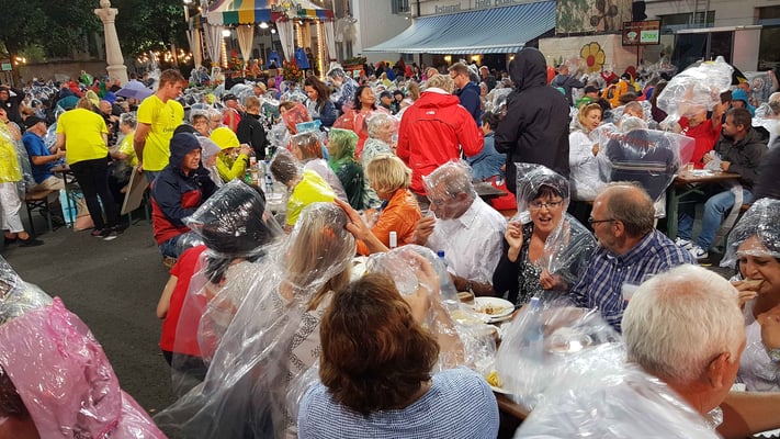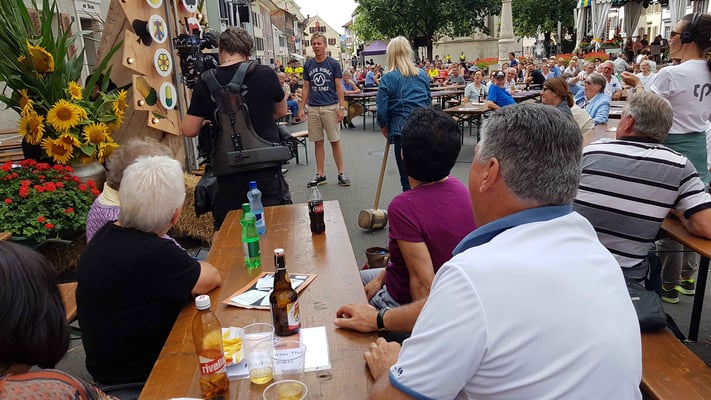 Der Start der Sendung war verregnet, doch dies gab der Stimmung die im Städtchen herrschte keinen Abbruch und Kilchsberger/Scherrer moderierten die Sendung gekonnt durch den Abend. Der Regen war nur von kurzer Dauer und so konnten die Regenschütze schon bald wieder abgezogen werden.