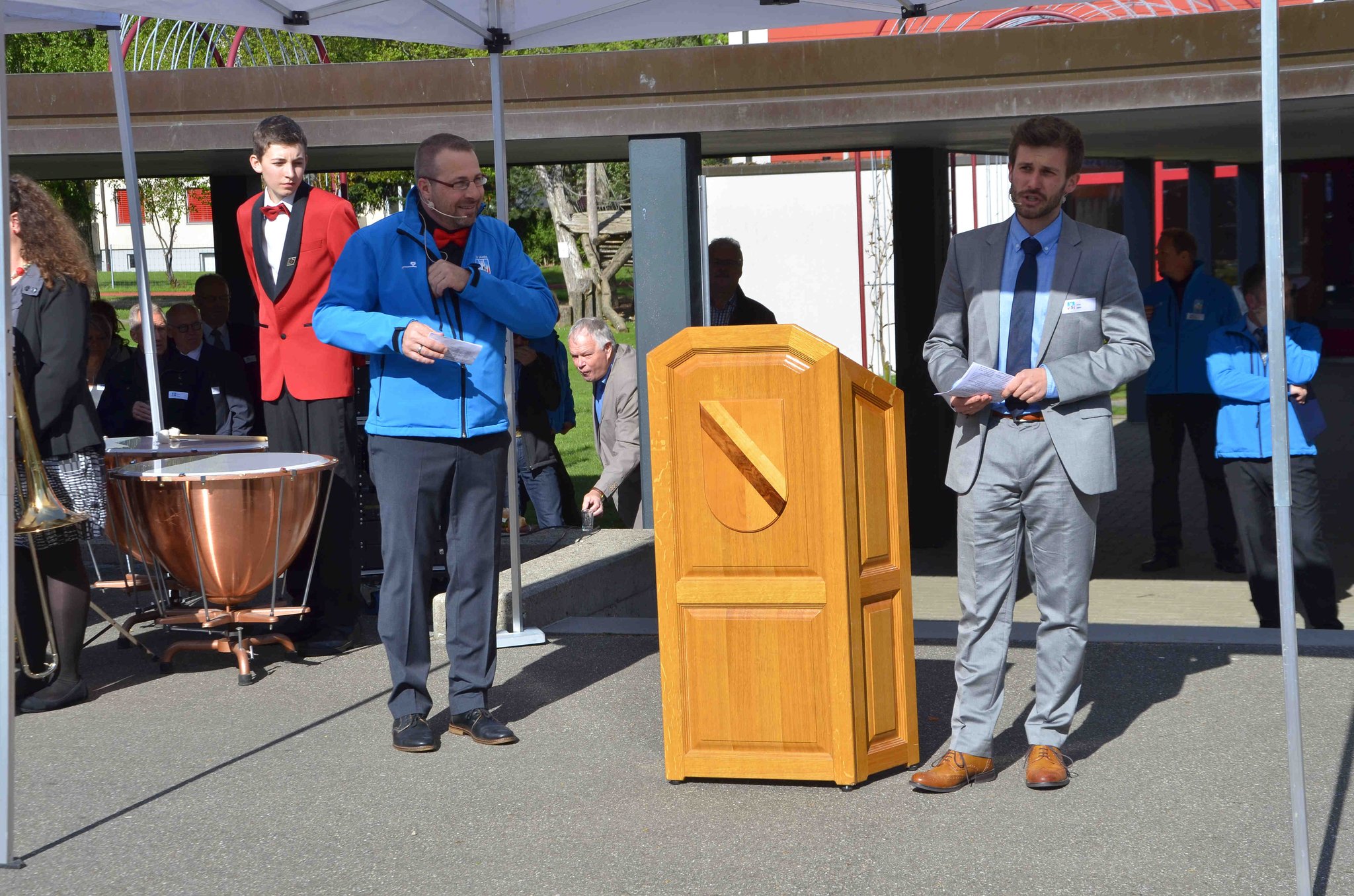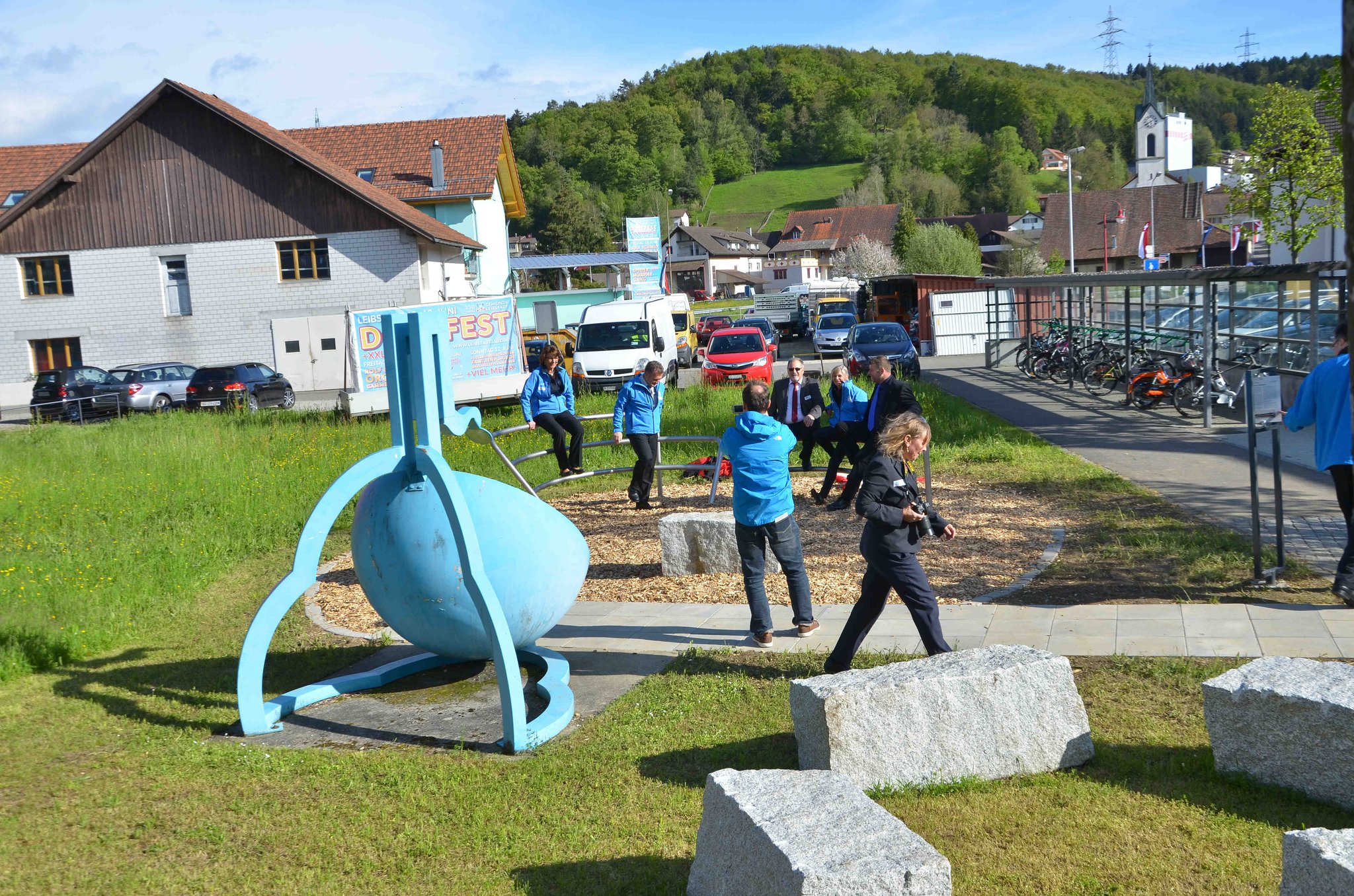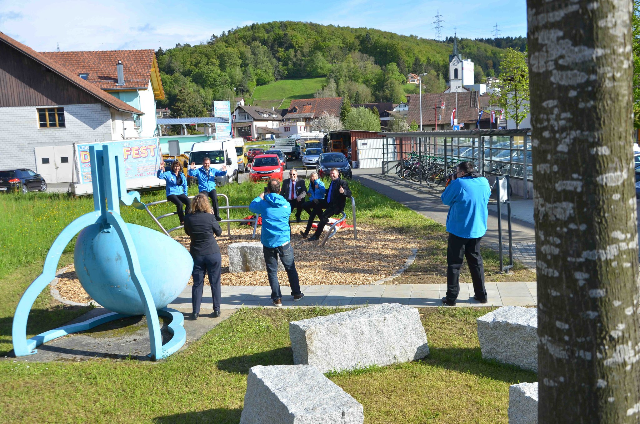Der Männerchor und die Musikgesellschaft Leibstadt gaben den musikalischen Rahmen. Mit dem Löibschtler- March, einer Uhraufführung glänzte dann die Musikgesellschaft, doch auch der Männerchor trumpfte mit einem fast vergessenem Leibstadt Lied auf. Die Einweihung des „Bänkliweg“ stand nun noch an, ein Themenweg der die 150 Jahre neue Leibstadter Geschichte näher bringt. Erstmals wurden die kreativen Geister des Bänkliweg geehrt und danach liess OK Präsident Daniel Muntwyler das Bänkli Nr. 14 traditionell für alle 15 Bänkli enthüllen.