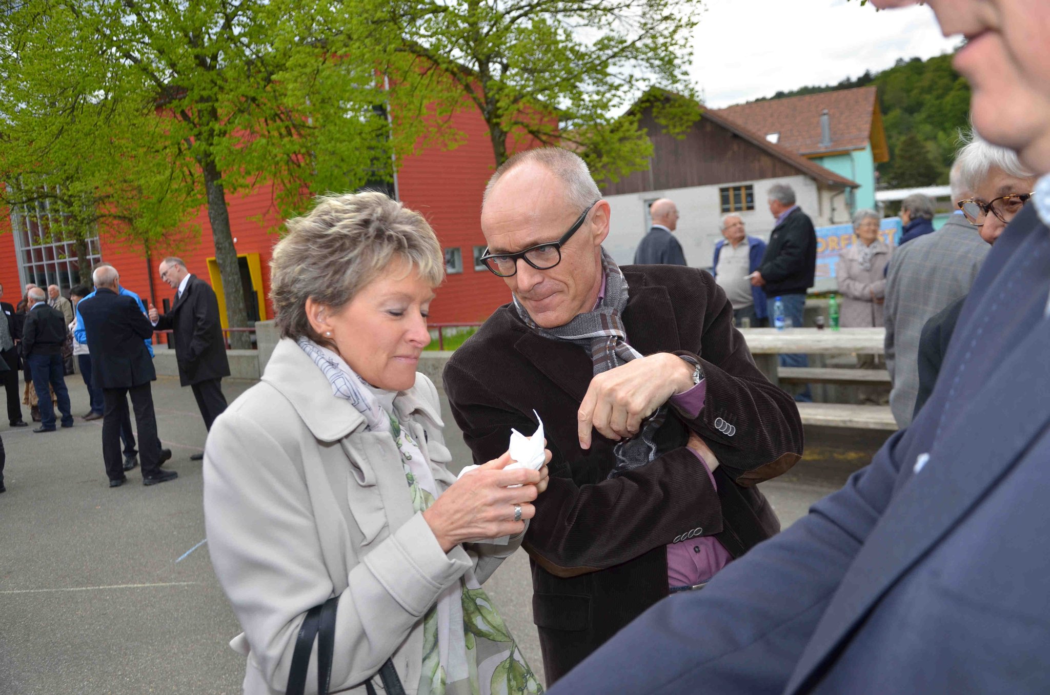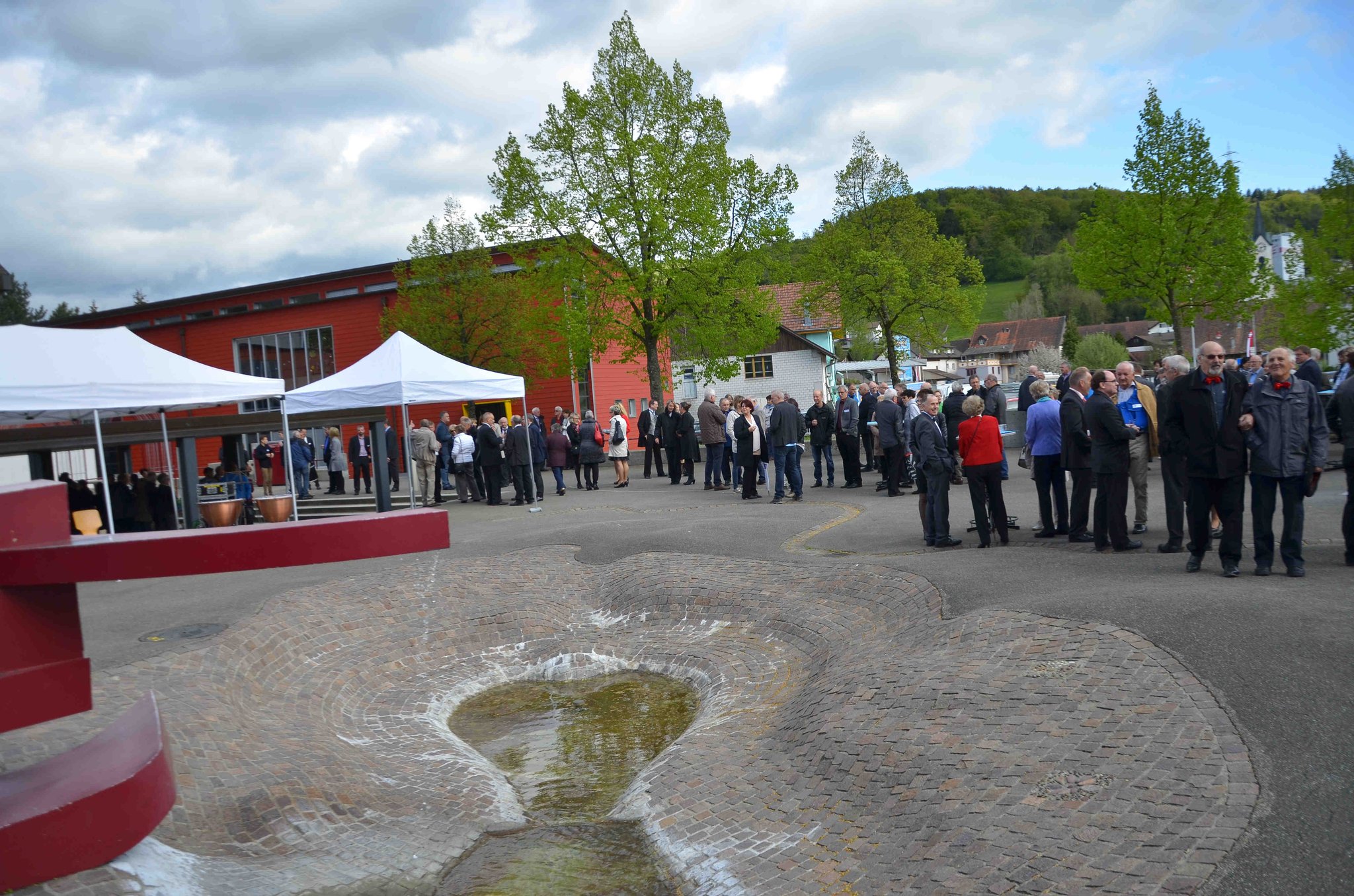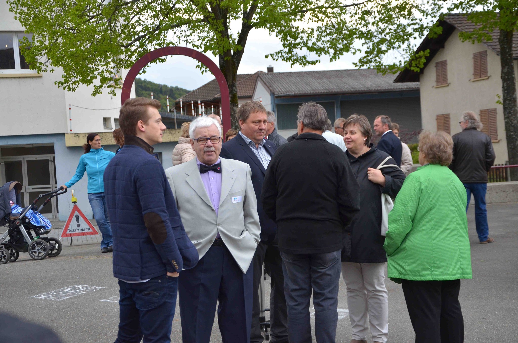 Auf dem Schulhausareal hatten sich in der Zwischenzeit auch die Politiker und Wirtschaftsführer eingefunden. Regierungsrat Dr. Urs Hofmann konnte man unter den vielen Anwesenden, wie auch Nationalrat Hans Jörg Knecht und den deutschen Martin Kistler Landrat des Landkreis Waldshut ausmachen. Der oberste Chef des Kernkraftwerk Leibstadt Dr. Andreas Pfeiffer war ebenso anwesend wie René Soland GL AEW Energie AG. Gemeindeammänner und Gemeinderäte aus der näheren Umgebung liessen sich auch vom Zauber des Abends begeistern.