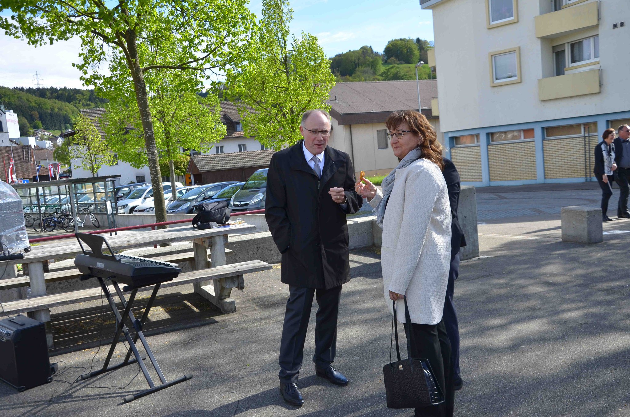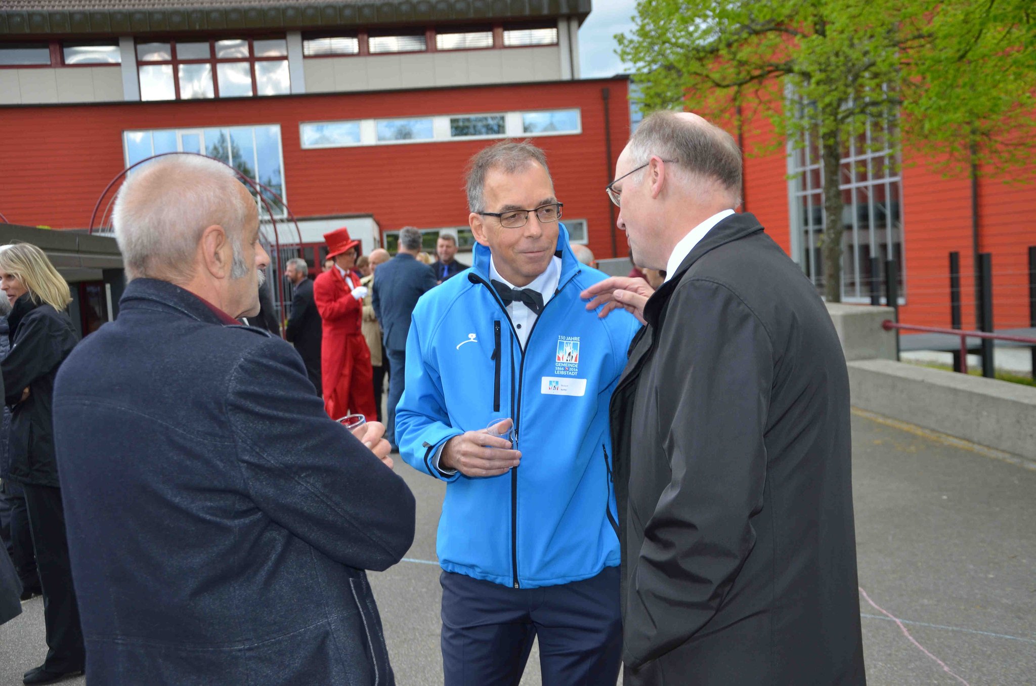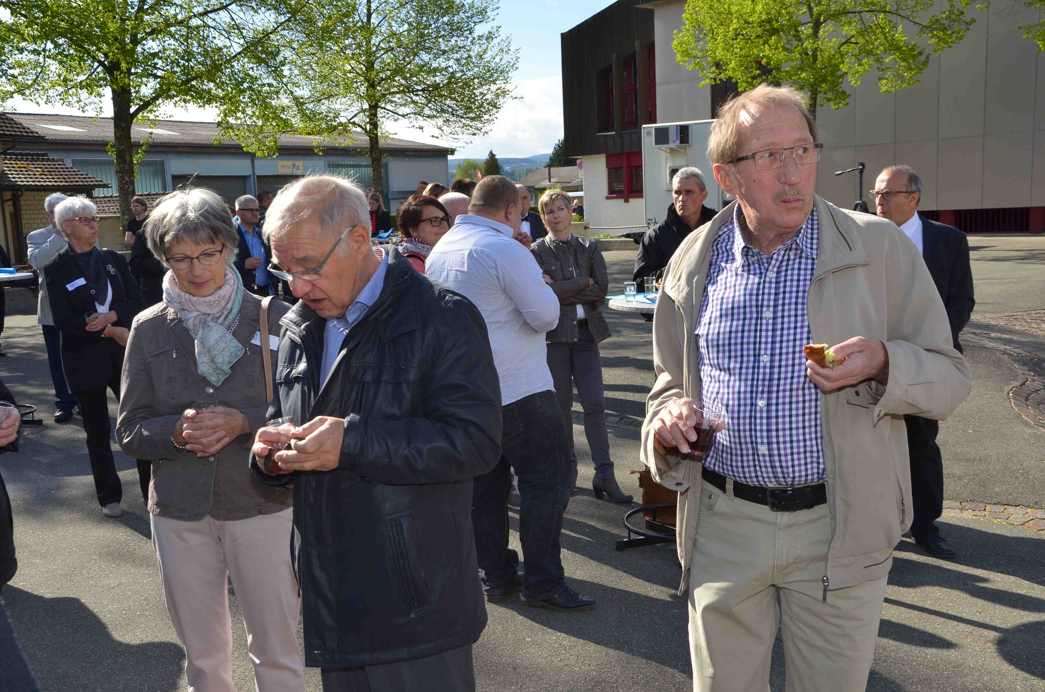 Auf dem Schulhausareal hatten sich in der Zwischenzeit auch die Politiker und Wirtschaftsführer eingefunden. Regierungsrat Dr. Urs Hofmann konnte man unter den vielen Anwesenden, wie auch Nationalrat Hans Jörg Knecht und den deutschen Martin Kistler Landrat des Landkreis Waldshut ausmachen. Der oberste Chef des Kernkraftwerk Leibstadt Dr. Andreas Pfeiffer war ebenso anwesend wie René Soland GL AEW Energie AG. Gemeindeammänner und Gemeinderäte aus der näheren Umgebung liessen sich auch vom Zauber des Abends begeistern.