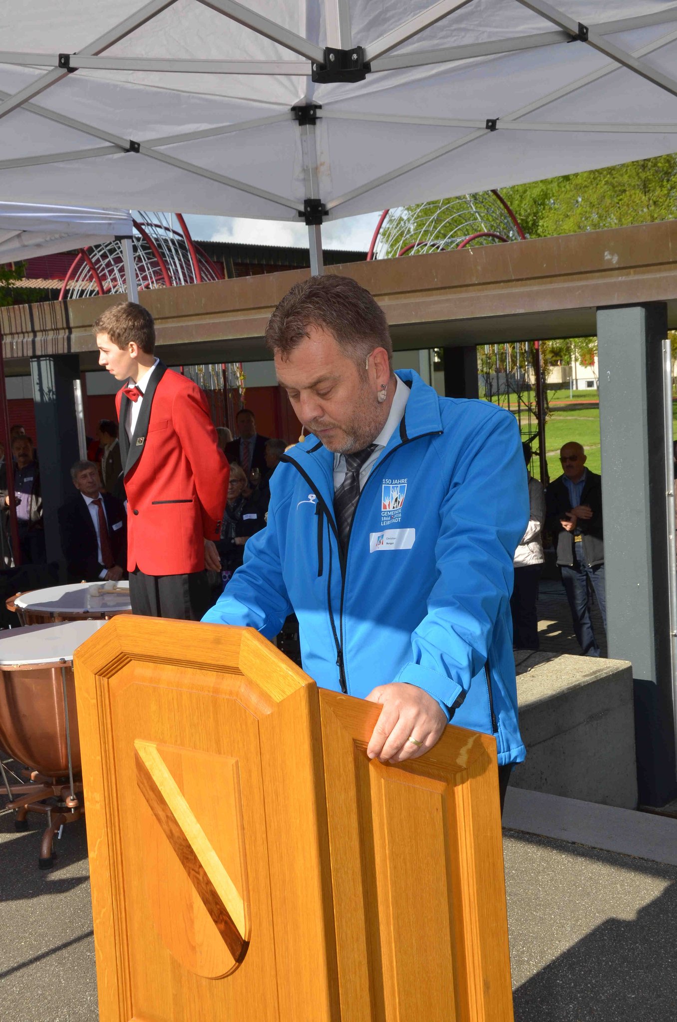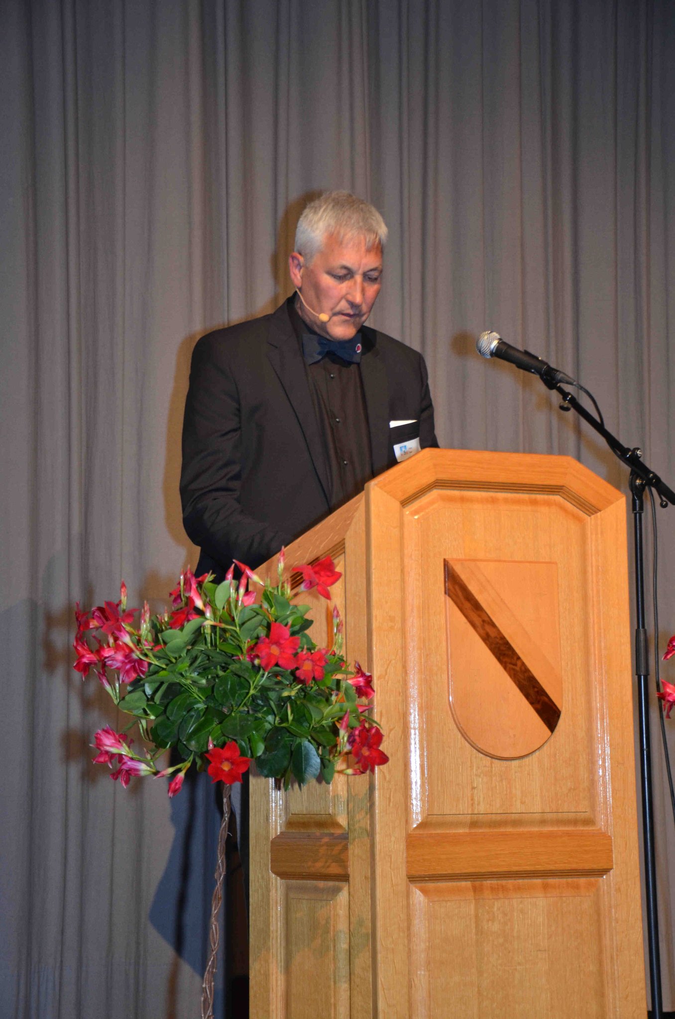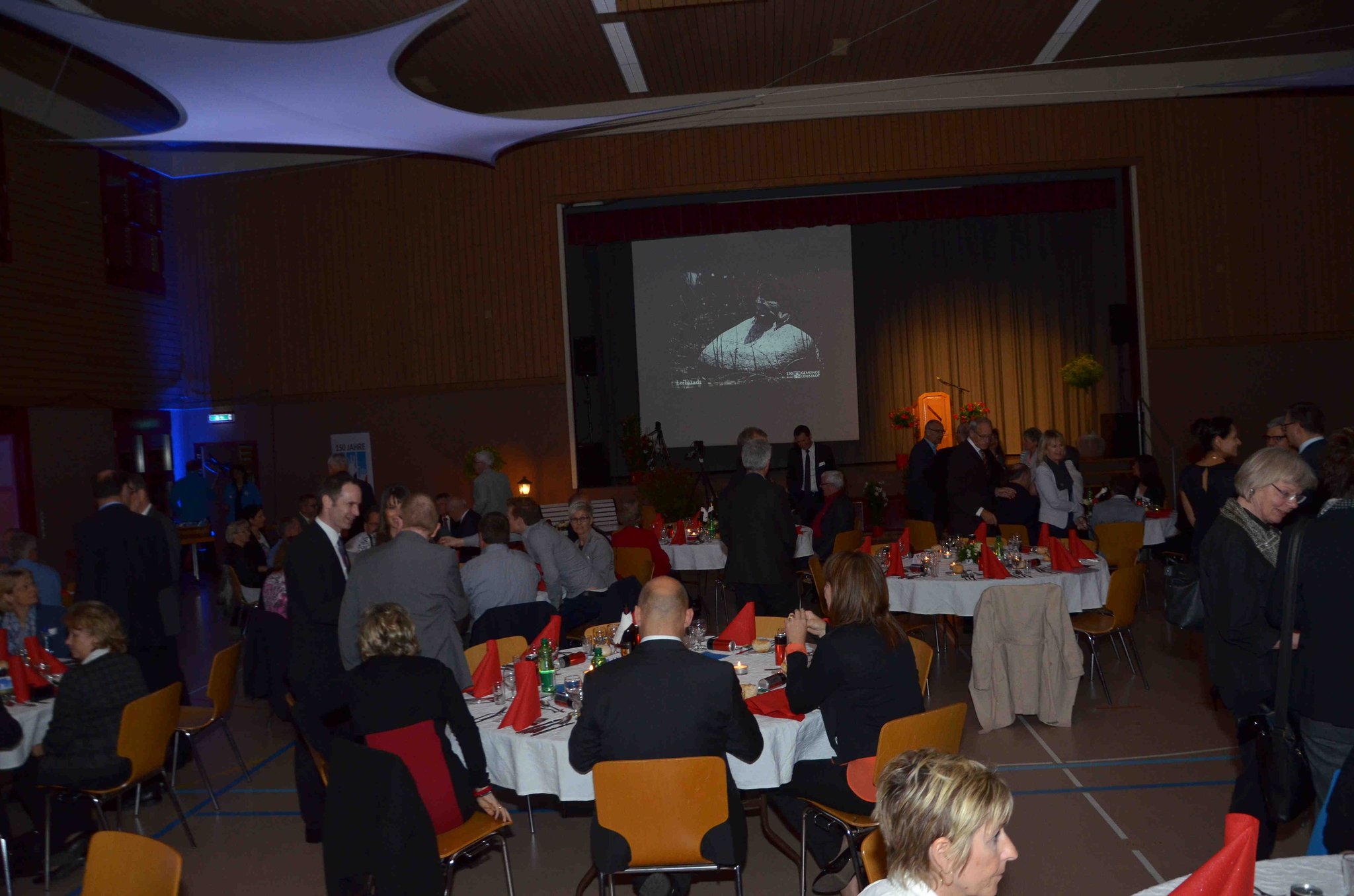 In der geschmückte Bernowa Halle, die abgedunkelt war und so einen festlichen Tatsch gab hatten sich alle Geladenen an ihren festgelegten Tischen gesetzt als sich wieder OK-Präsident Daniel Muntwyler zum Wort meldete. Nochmals begrüsste er all die Gäste und bat danach Gemeindeammann Christian Burger ans Rednerpult.