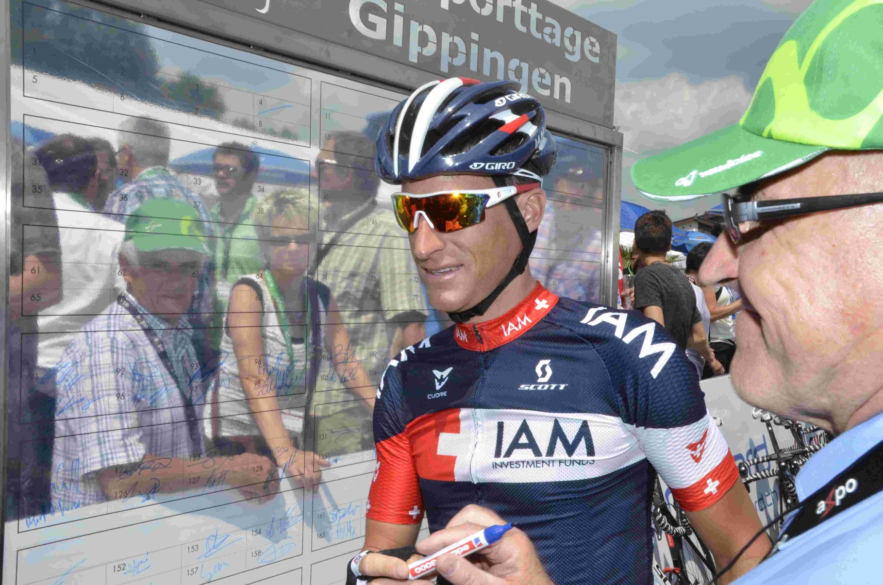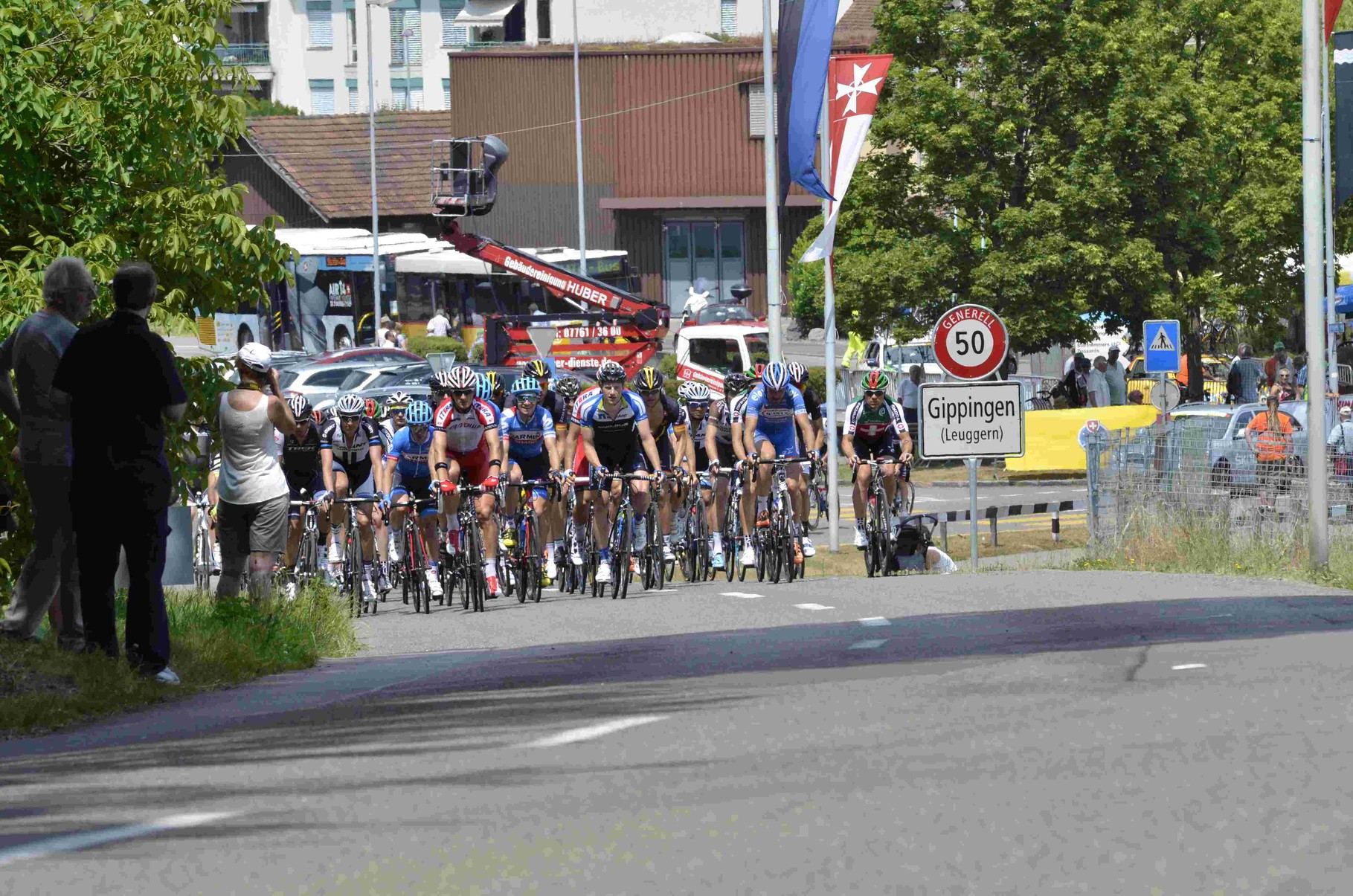 Über Gippingen wurde es immer dunkler und kurz vor Ende des Rennens ein heftiger, aber kurzer Regenschauer und danach waren auch die Ausreisser, die ein sehr animiertes Rennen zeigten, eingeholt worden. Nochmals bildete sich eine kleine Spitzengruppe in der auch der Ehrendinger Silvan Dillier Unterschlupf gefunden hatte, auch Michael Albasini mischte heftig mit und schon setzte man auf einen dritten Sieg des Schweizers in Gippingen.