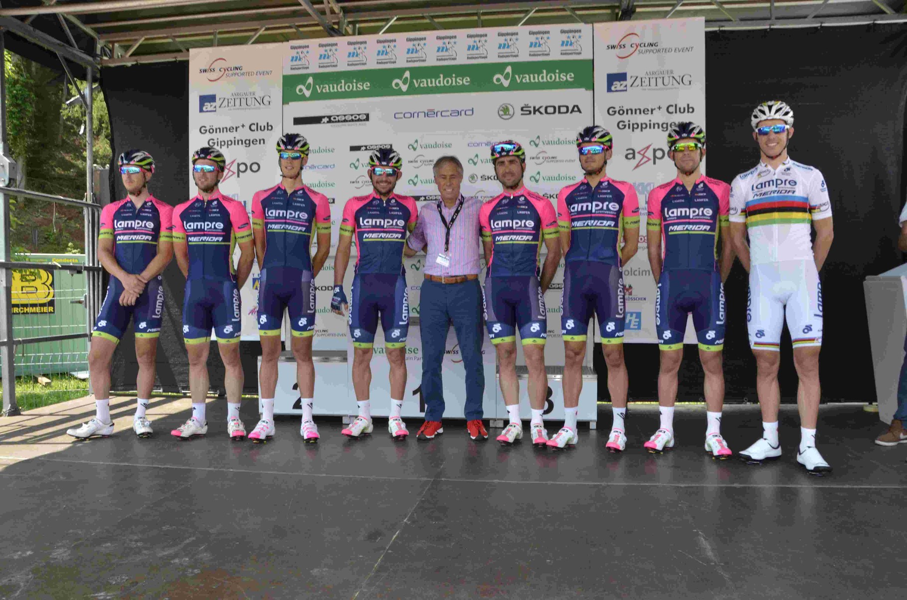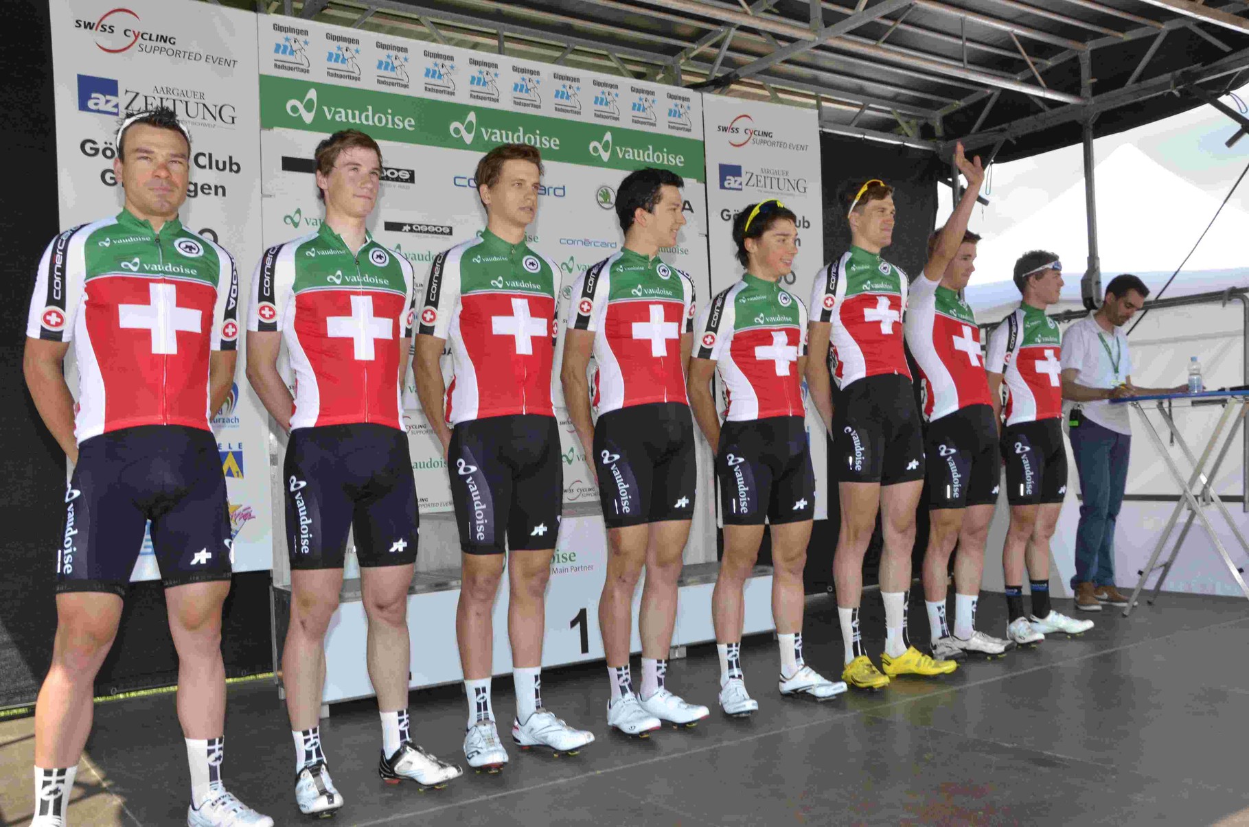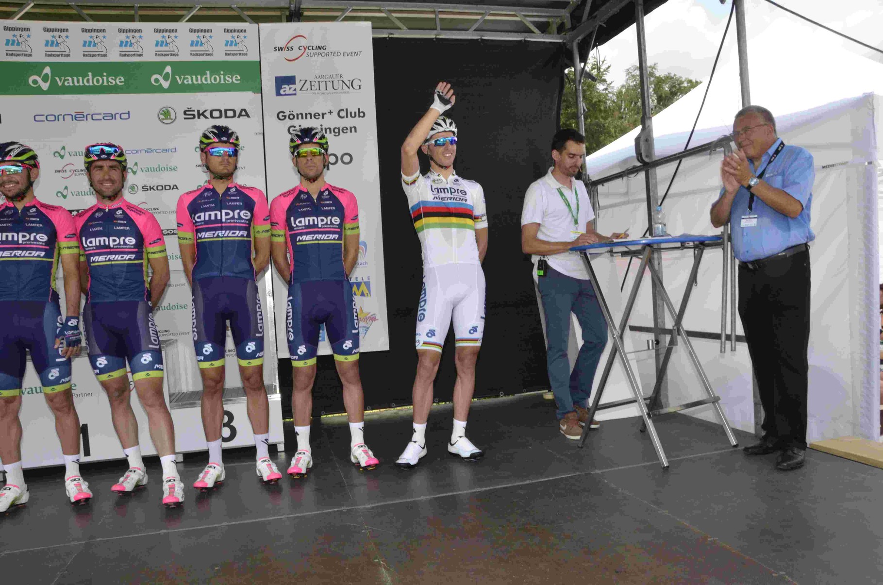Kurz nach zwölf, die Begrüssungsreden des OK-Präsidenten Rene Huber, des Landammanns Roland Brogli und des Gemeindeammanns Peter Nyffeler waren vorbei als sich die ersten Fahrer zur Präsentation bereitmachten und sich auf dem Podium den Zuschauern vorstellten.
