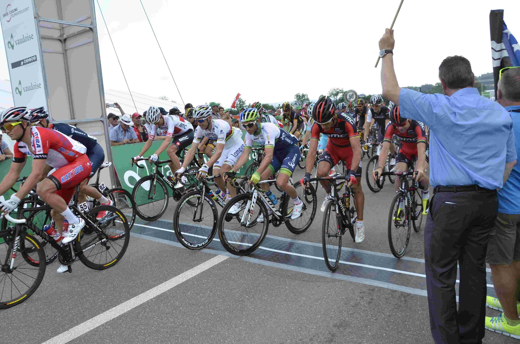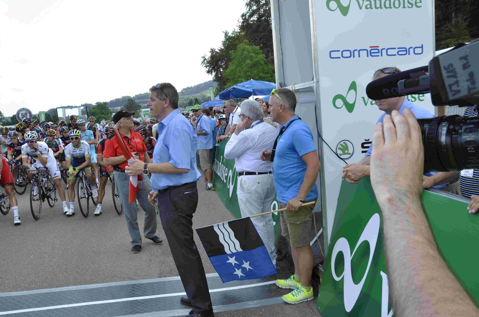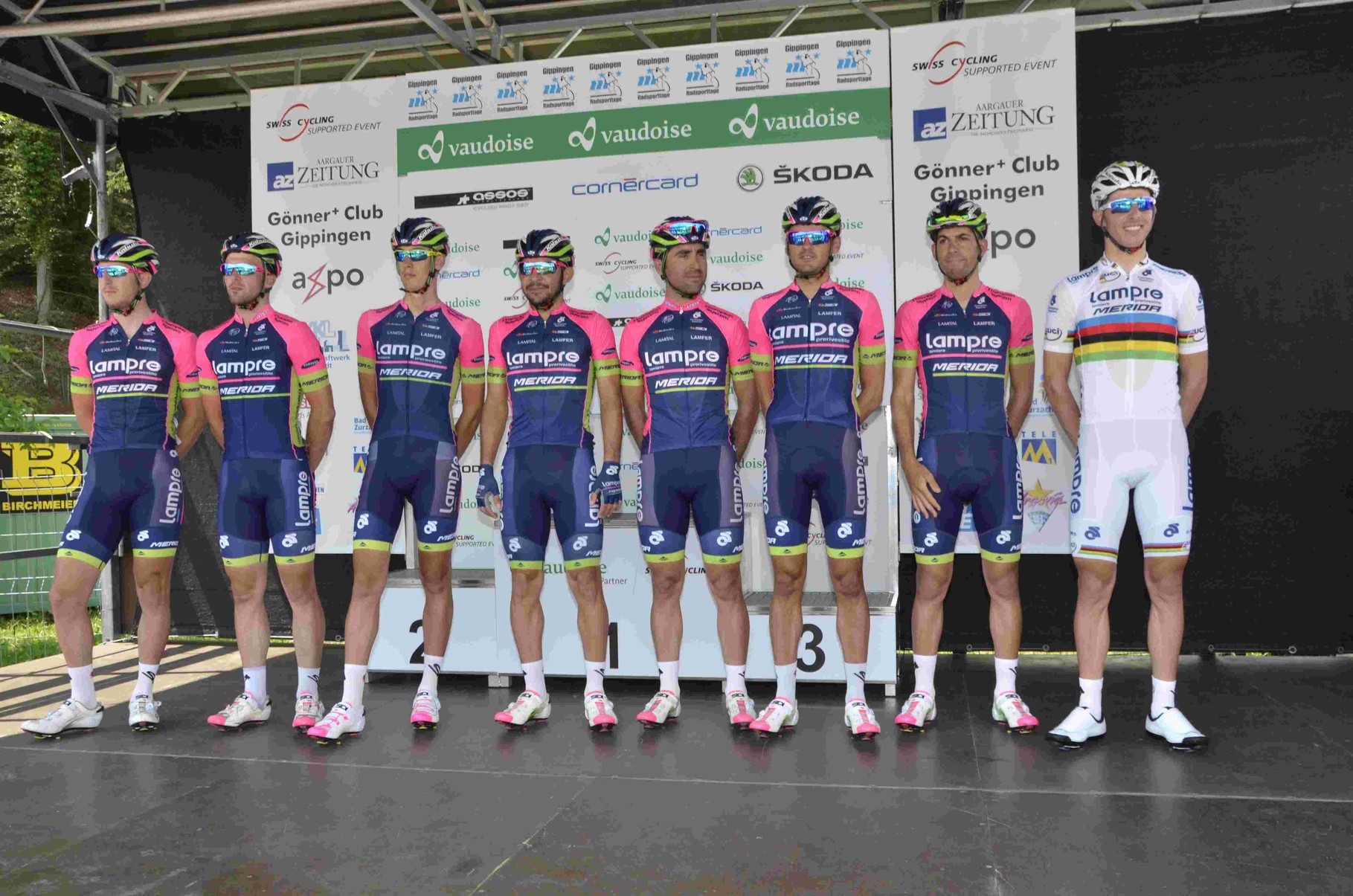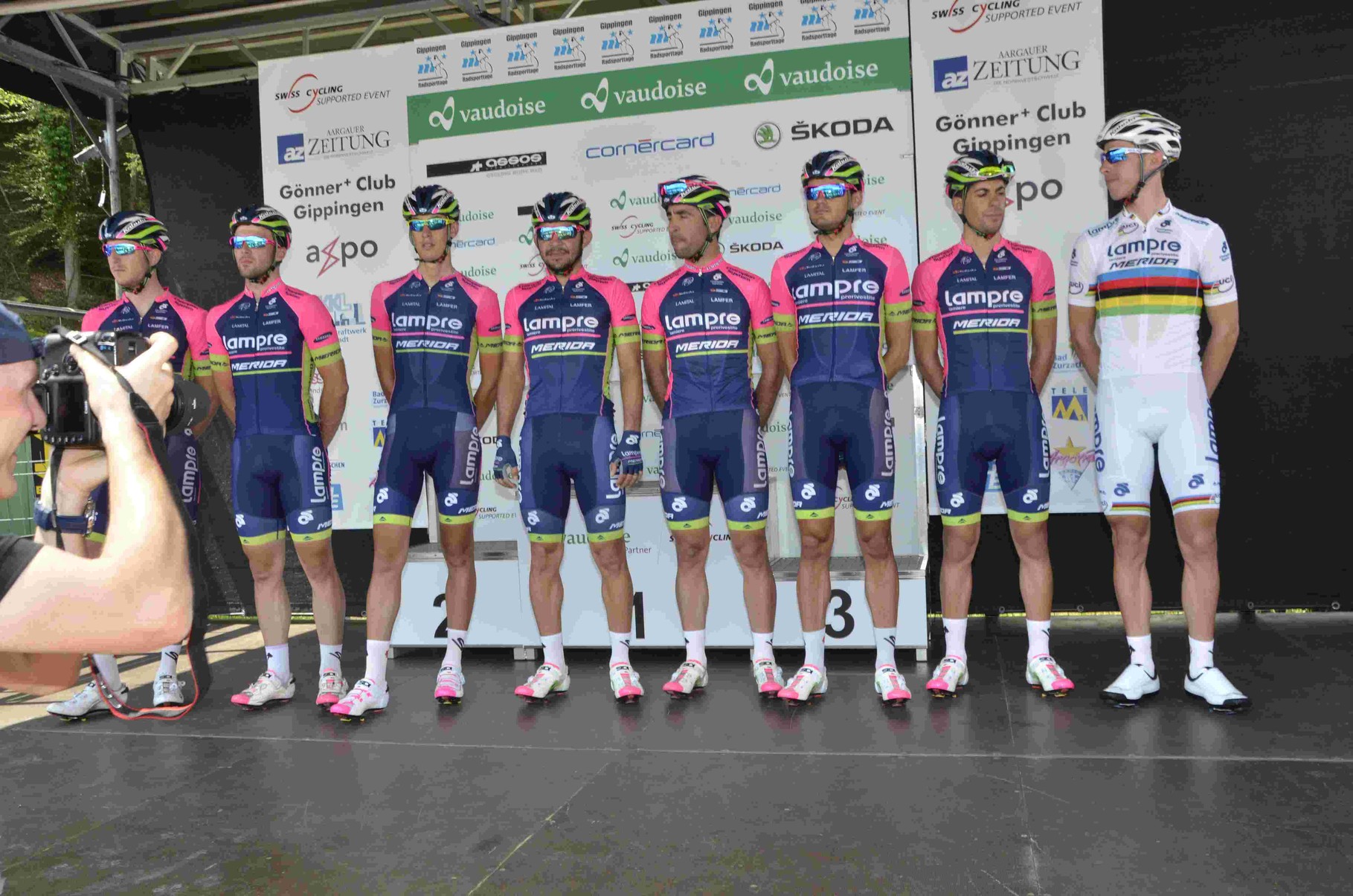 Kurz nach zwölf, die Begrüssungsreden des OK-Präsidenten Rene Huber, des Landammanns Roland Brogli und des Gemeindeammanns Peter Nyffeler waren vorbei als sich die ersten Fahrer zur Präsentation bereitmachten und sich auf dem Podium den Zuschauern vorstellten.