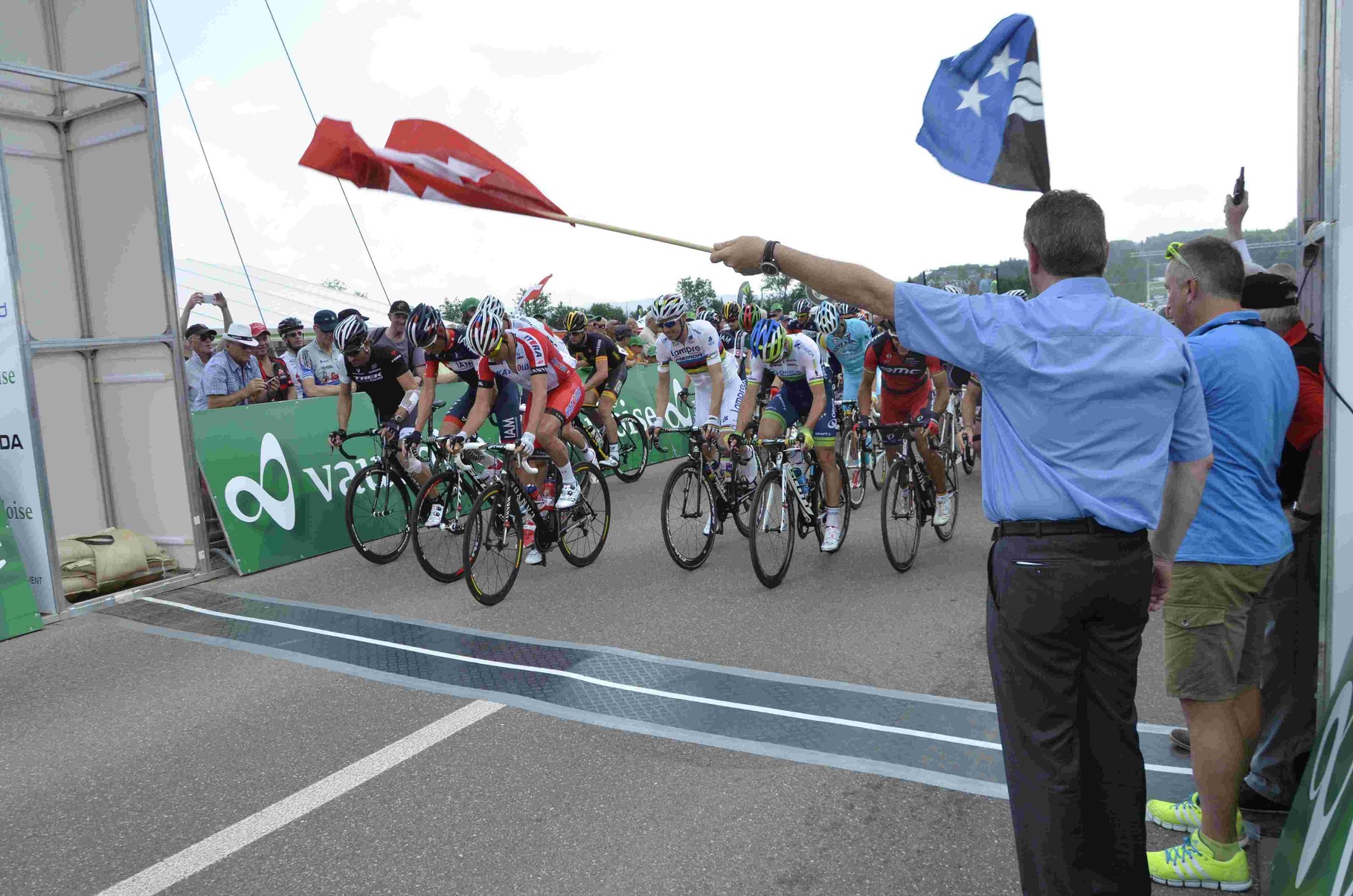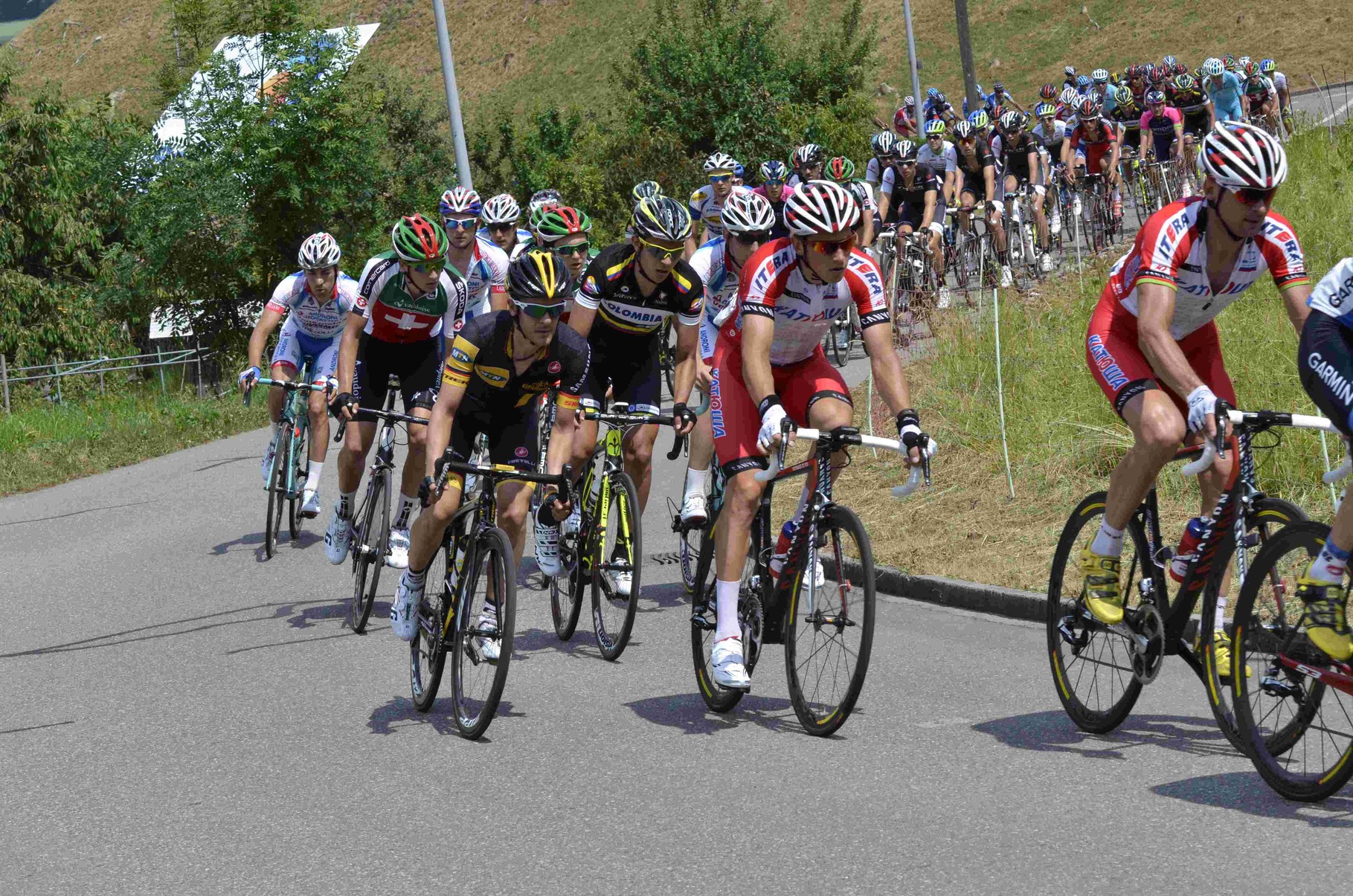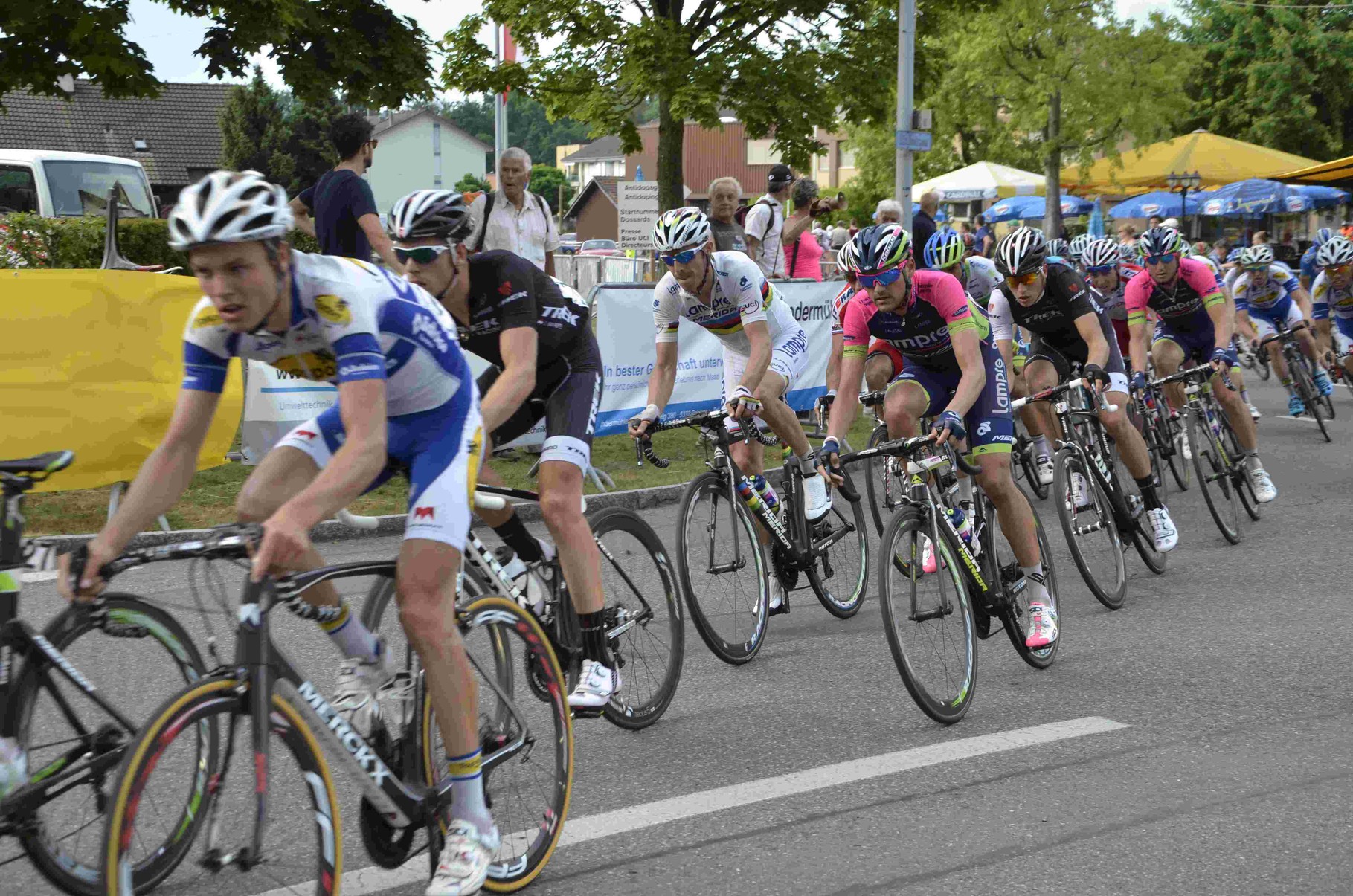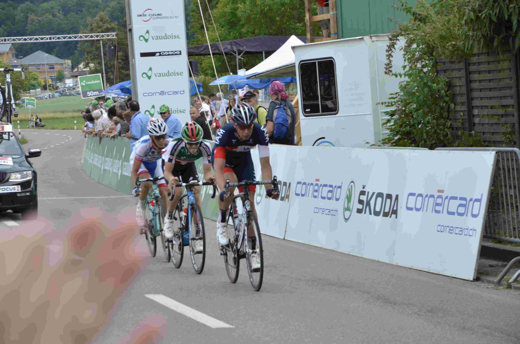 Alles wurde dann etwas anders und geschlossen kam man in die letzte Kurve vor dem Ziel. Der Deutsche Simon Geschke aus dem Team Giant-Shimano trat als Erster in die Pedalen und holte sich die entscheidenden Zentimeter heraus, denn der Lokalfahrer Dillier kam ihm noch bedrohlich nah und hätte, ihn mit dem riesigen Schwung den er aufgebaut hatte wenig später überholt. Dritter wurde der Belgier Jérome Baugnies.