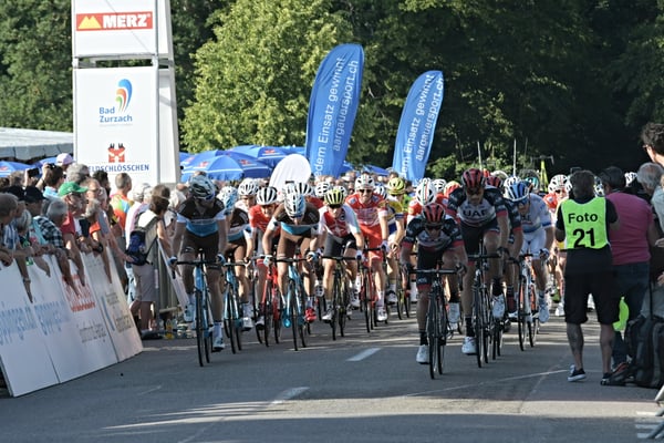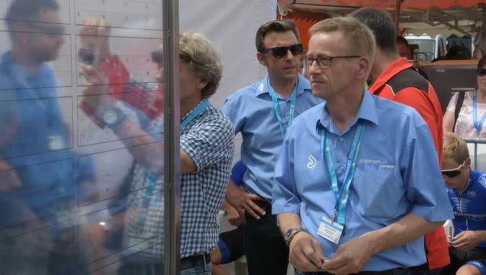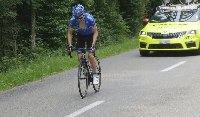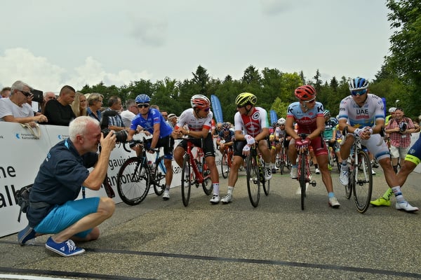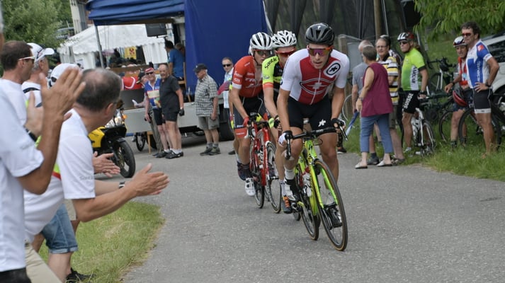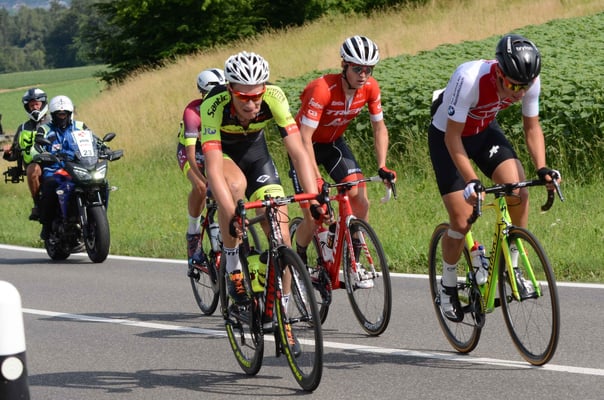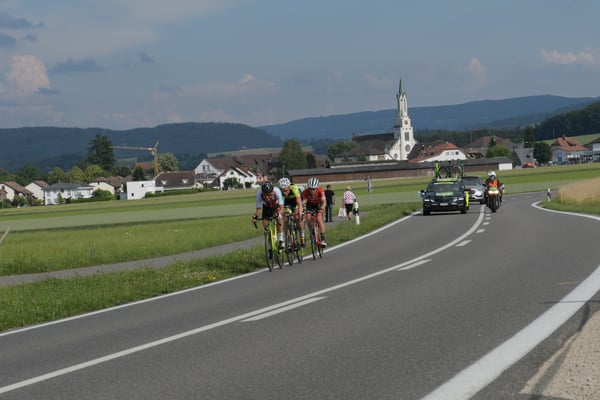 Regierungsrat Markus Dieth schickte die Fahrer auf die elf Runden und schon nach wenigen hundert Metern verabschiedeten sich ein Quartett, darunter drei Schweizer Gian Friesecke, Stefan Bissegger und Simon Pelland.